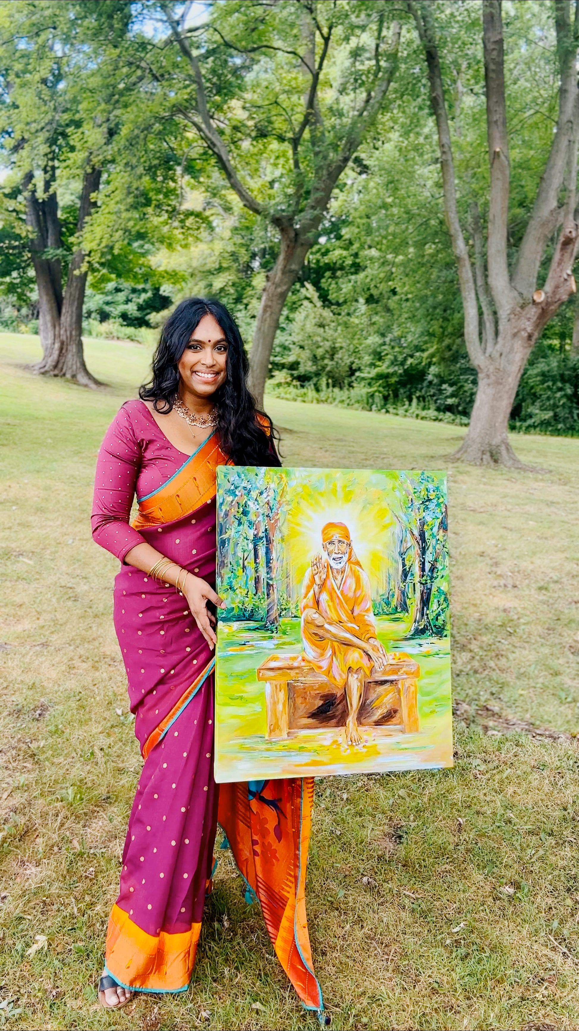 This artwork captures Shirdi Sai Baba's blessings in a beautiful golden glow.