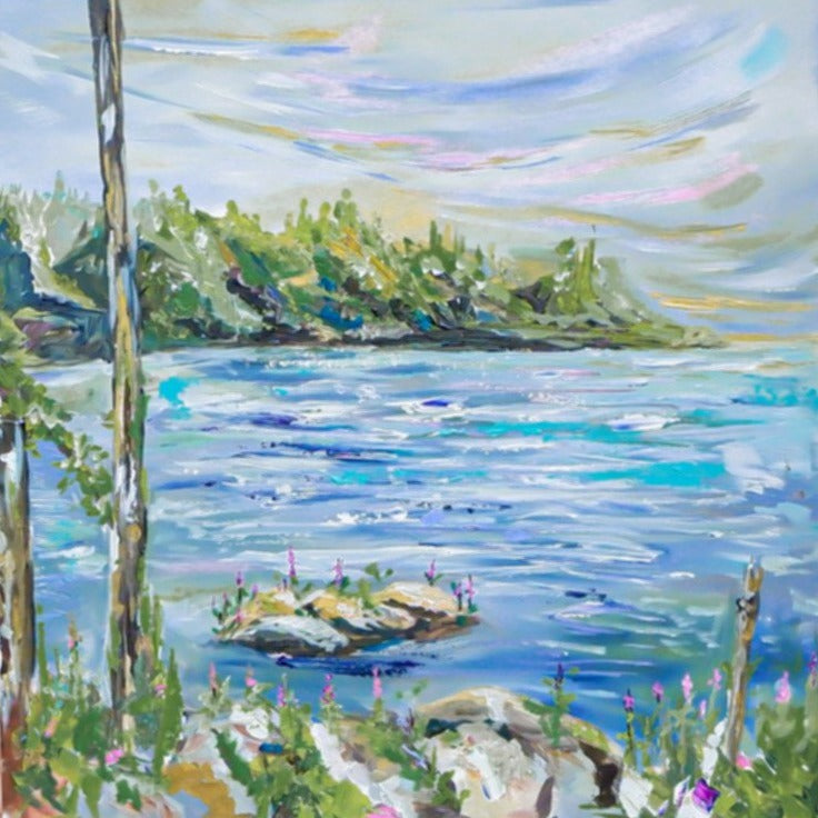 This was painted while camping and recreating a beautiful hike I had. Keep a piece of cottage season by your side, no matter what season.