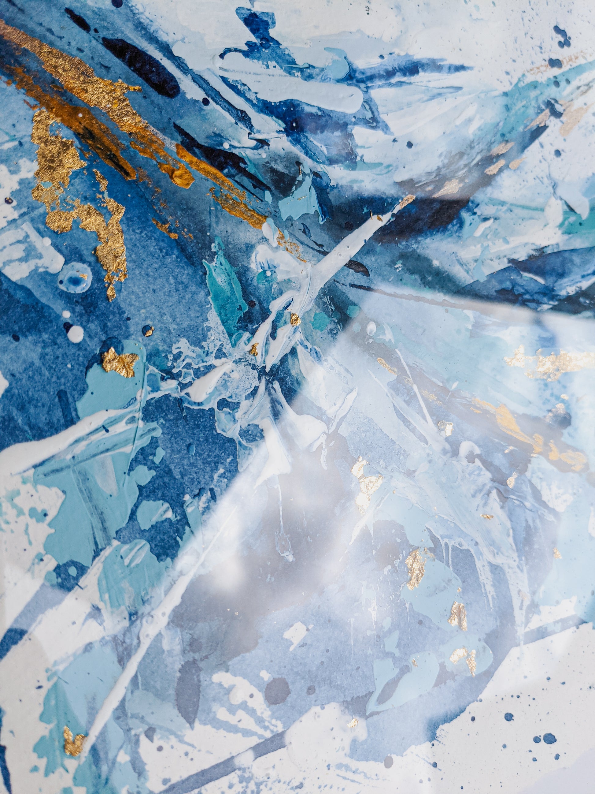 - Mixed media of paint on canvas: Acrylic paint, alcohol ink, oil pastel