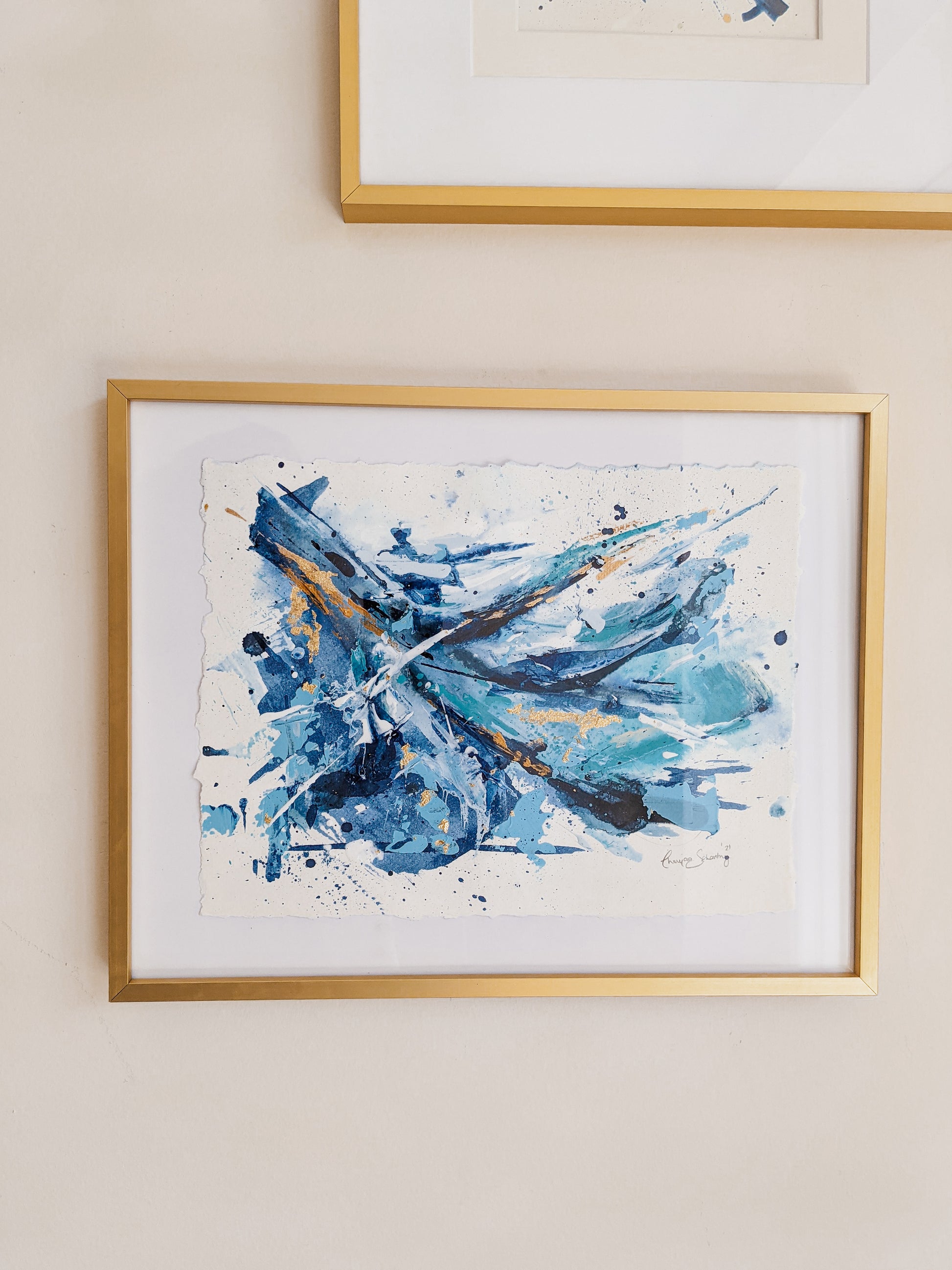 These paintings belong in a beautiful brushed gold frame. I highly recommend adding the gold frames with the art piece. The gold matches perfectly with the gold accents in the paintings. If you are interested in framing ($45), please add a note in your order or email me and I can invoice the additional framing cost. Please note, framing is only applicable for pick-up orders.