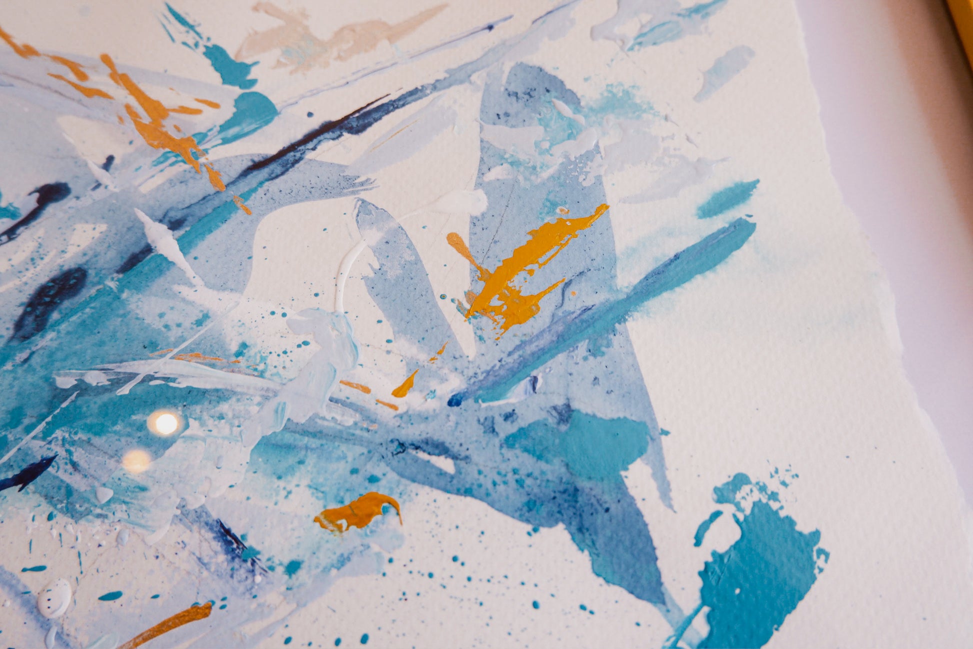 - Mixed media of paint on canvas: Acrylic paint, alcohol ink, oil pastel