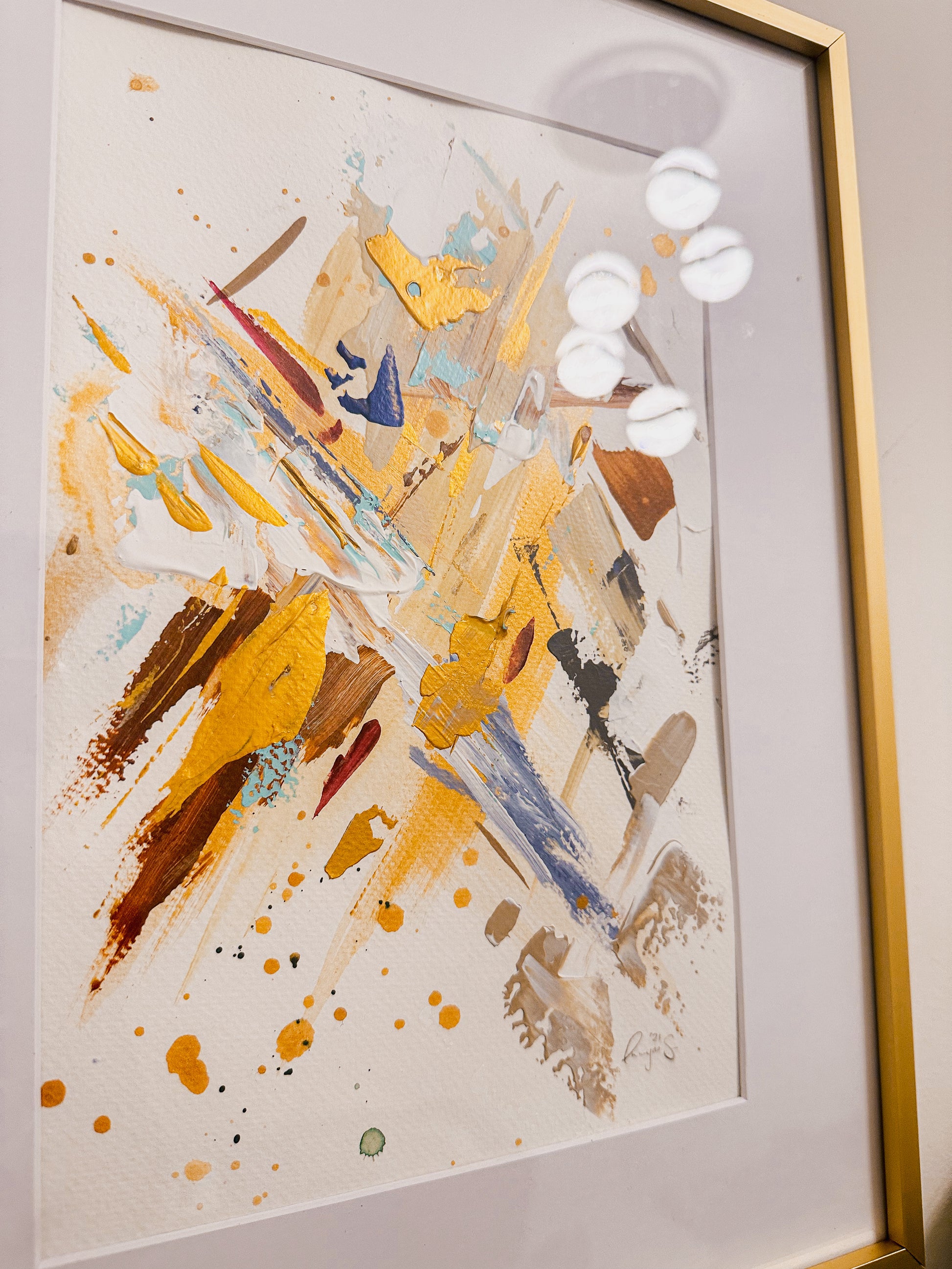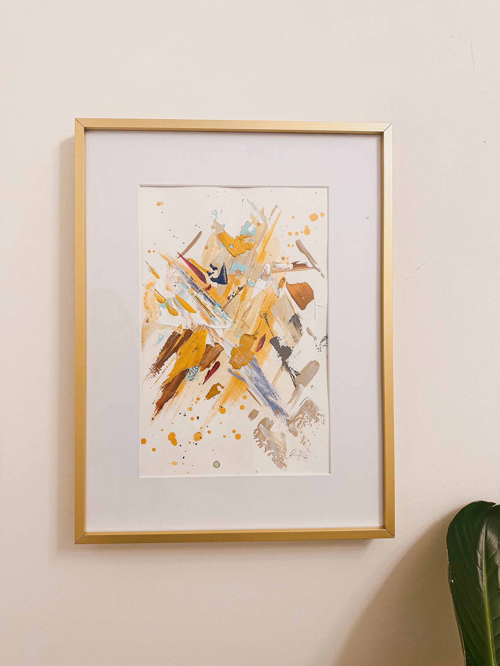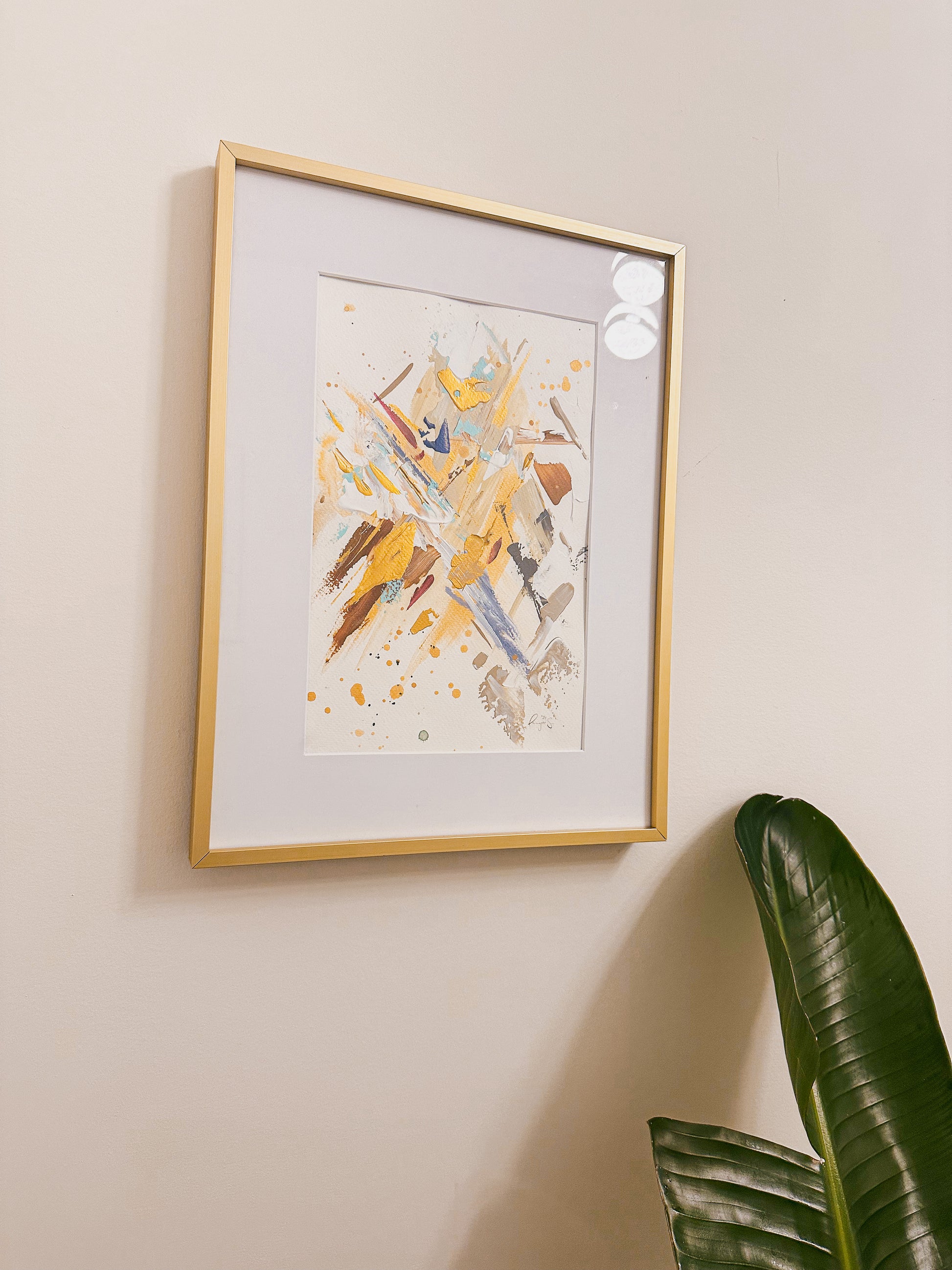 These paintings belong in a beautiful brushed gold frame. I highly recommend adding the gold frames with the art piece. The gold matches perfectly with the gold accents in the paintings. If you are interested in framing ($45), please add a note in your order or email me and I can invoice the additional framing cost. Please note, framing is only applicable for pick-up orders.