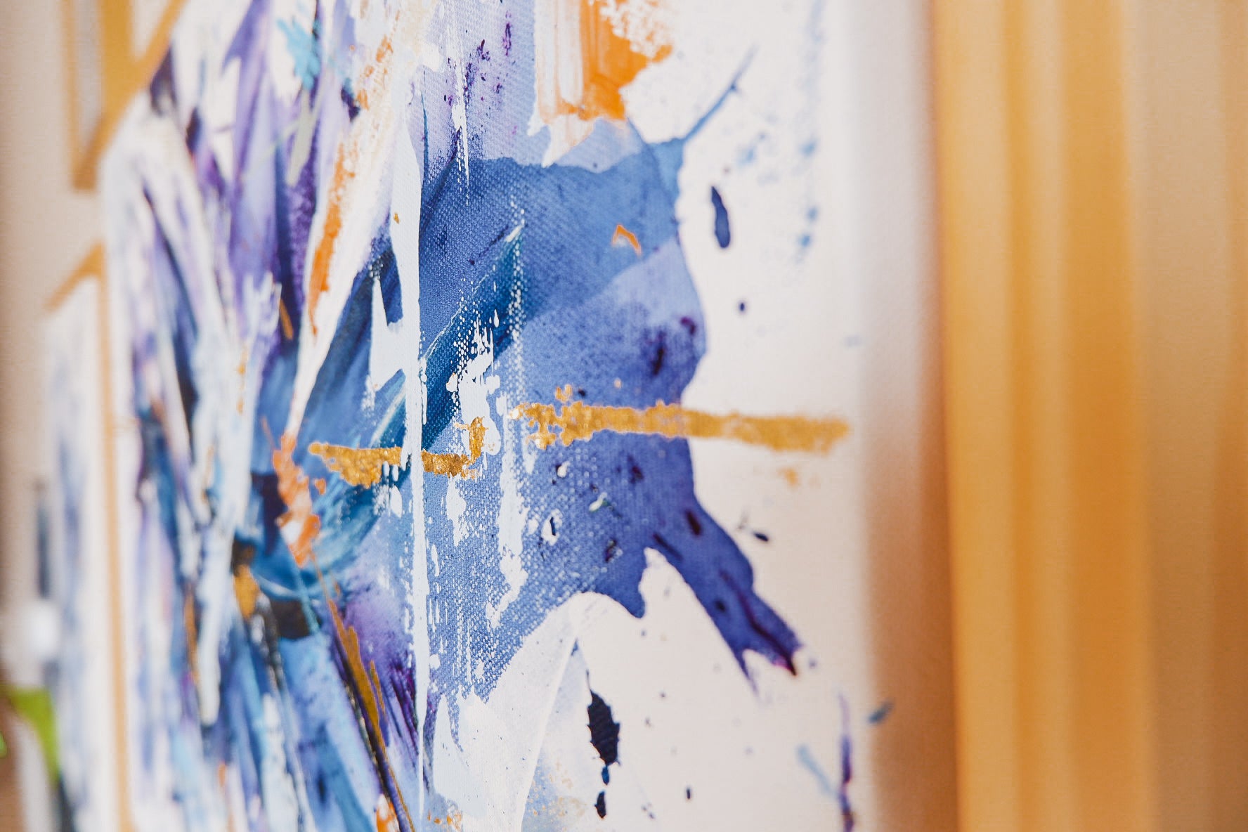 - Mixed media of paint on canvas: Acrylic paint, alcohol ink, oil pastel