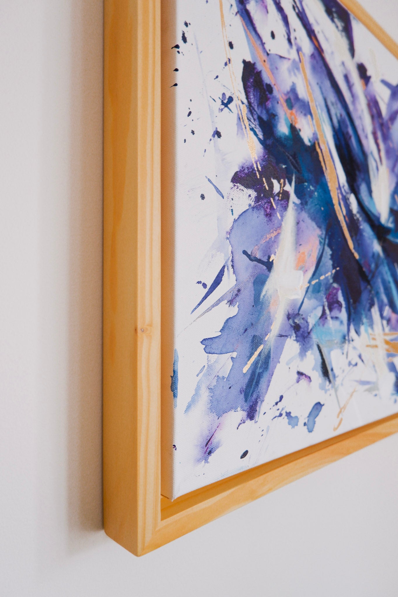 This painting is photographed with a natural wood floater frame that can also be purchased ($70). I highly recommend framing this painting with a frame so it is ready to hang. A white floater frame is also available. If you are interested in framing, please add a note in your order or email me and I can invoice the additional framing cost. Please note, framing is only applicable for pick up orders.