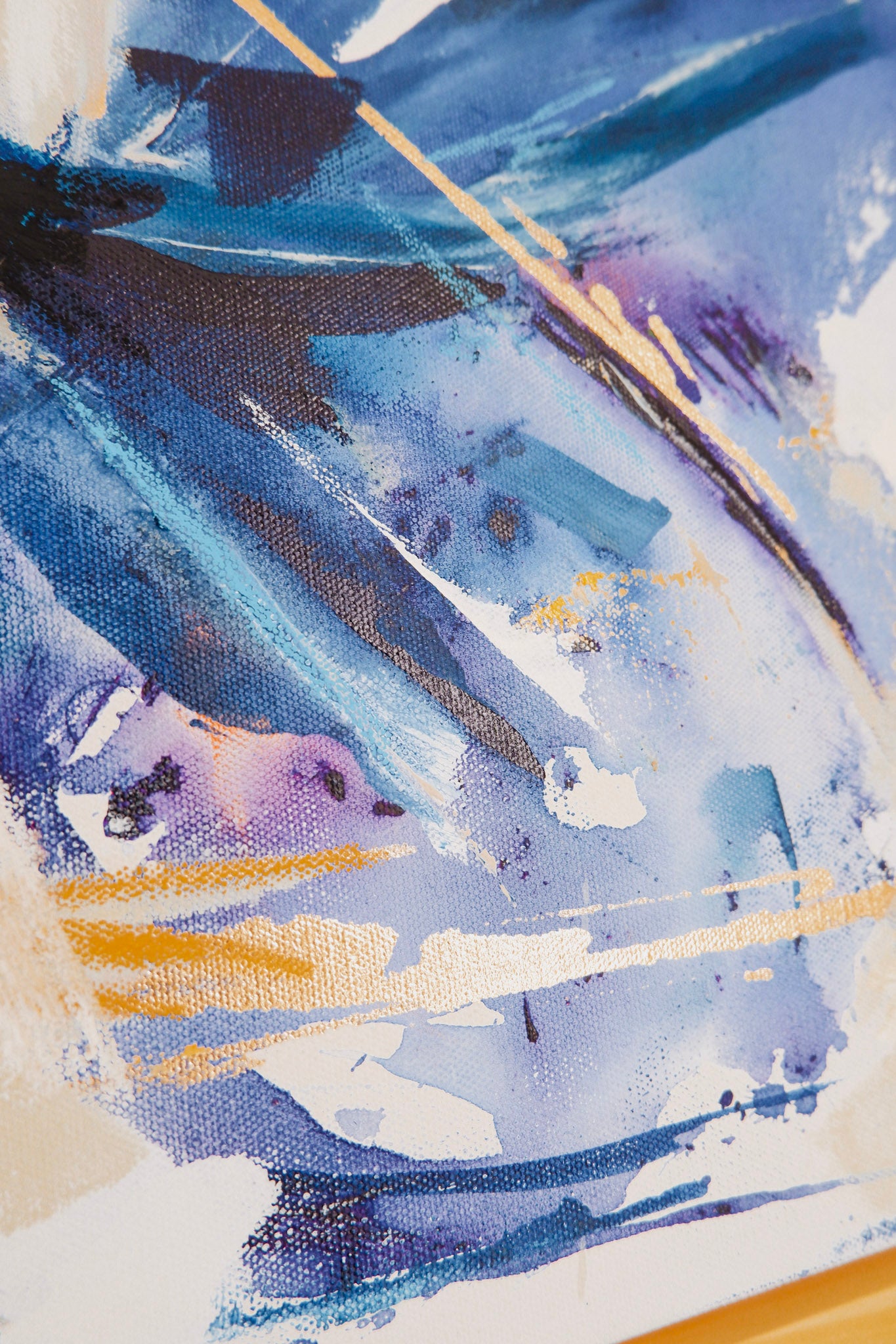 It's all a journey. Living in those layers, the chapters, the flows that make us who we are. In this painting there are many soft layers beneath those deep purples, indigos and blues. The gold shines bright above it all as each layer says it's own story. It's the journey.